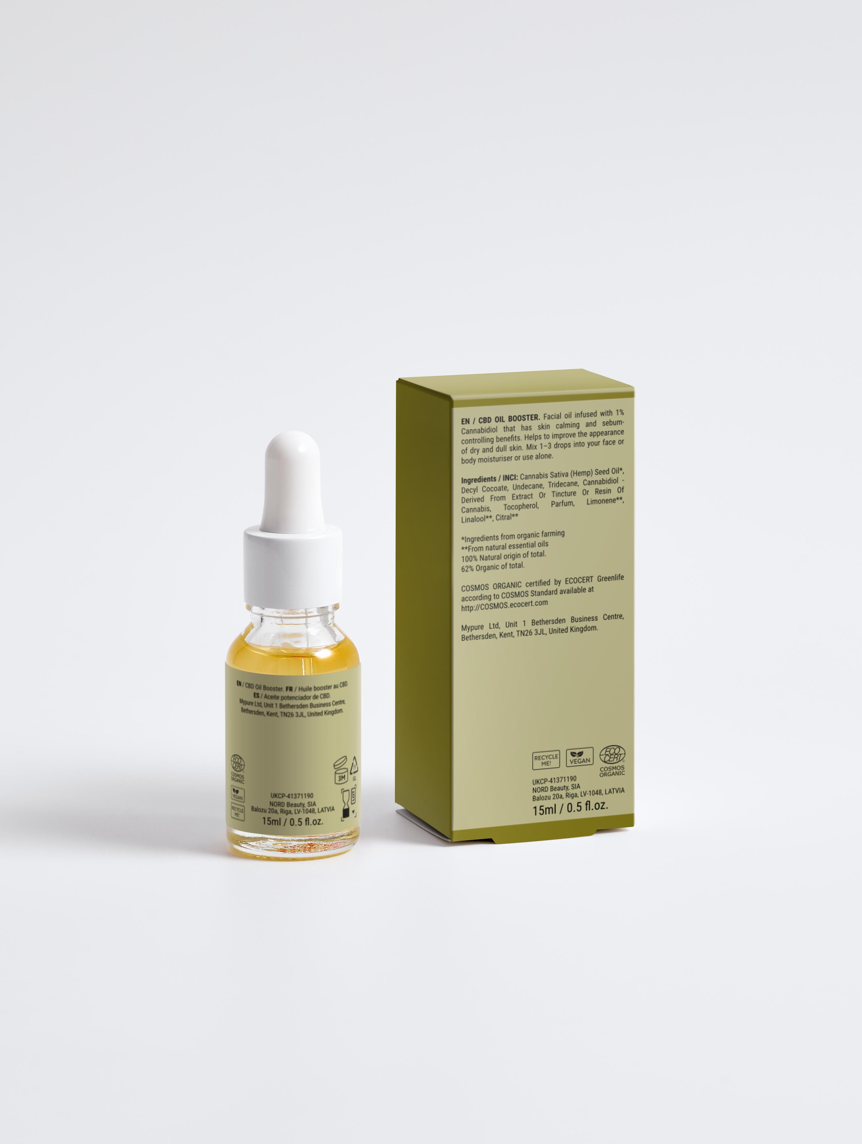 Facial oil infused private label hemp product with 1% Cannabidiol that has skin calming and sebum-controlling benefits. Helps to improve the appearance of dry and dull skin. Mix 1–3 drops into your face or body moisturiser or use alone.